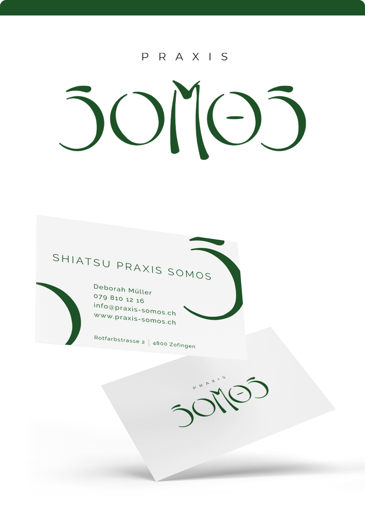 SOMOS ist eine auf Shiatsu spezialisierte Praxis, die mit ganzheitlichen Methoden die Gesundheit fördert und den Energiefluss im Körper ausgleicht. Unsere Leistungen umfassen die Erstellung des Logo-Designs, die Gestaltung von Printmedien sowie die Entwicklung einer einfachen Website auf Basis eines CMS inklusive anschliessender Projektübergabe.